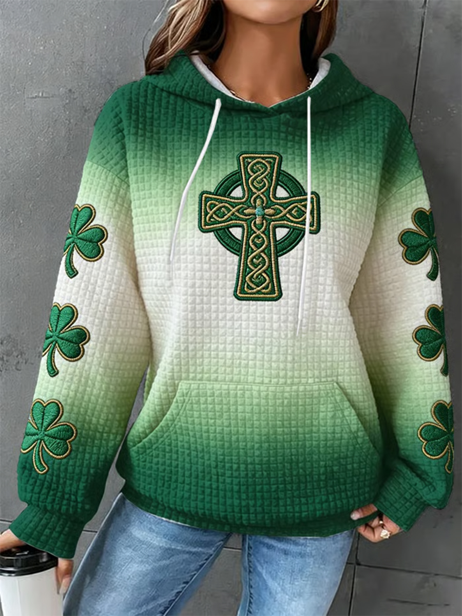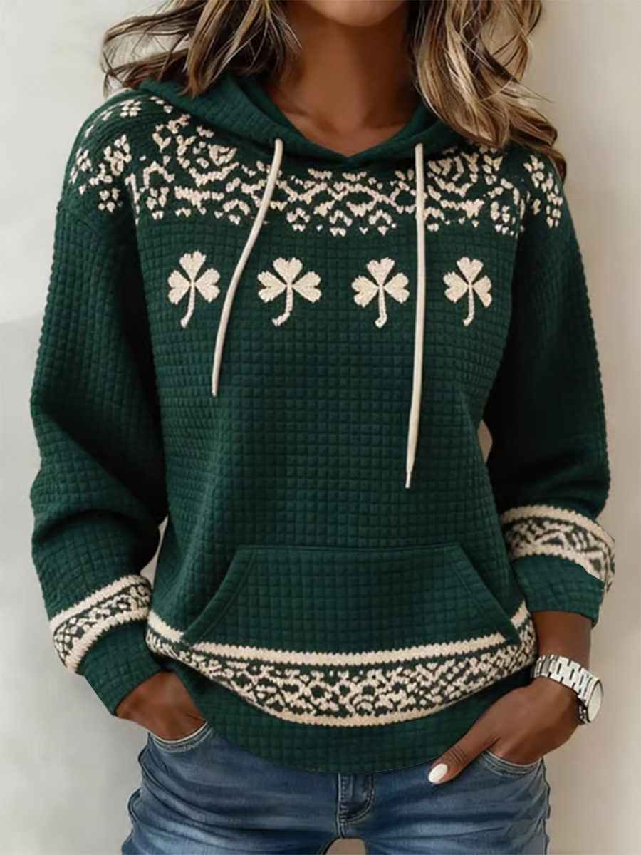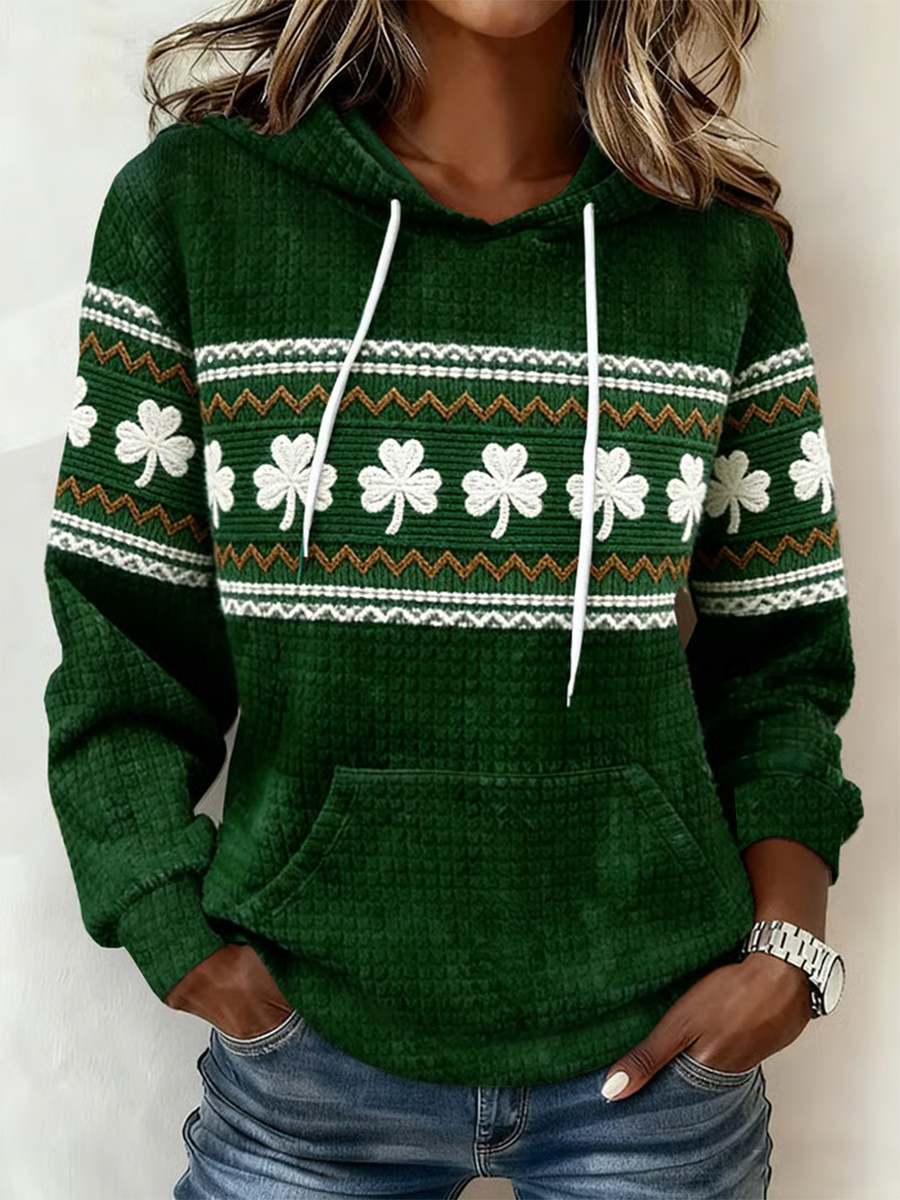 Women's St. Patrick's Day Shamrock Print Large-sized Hooded