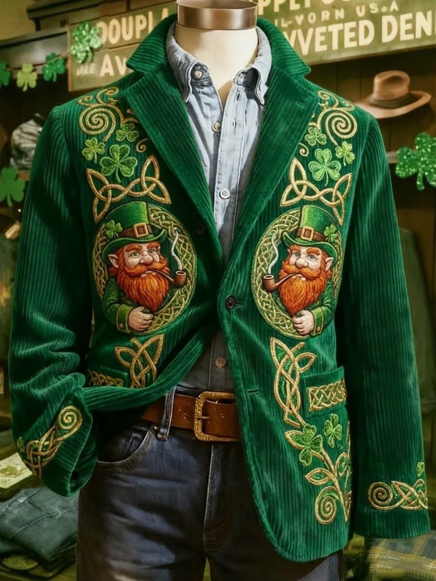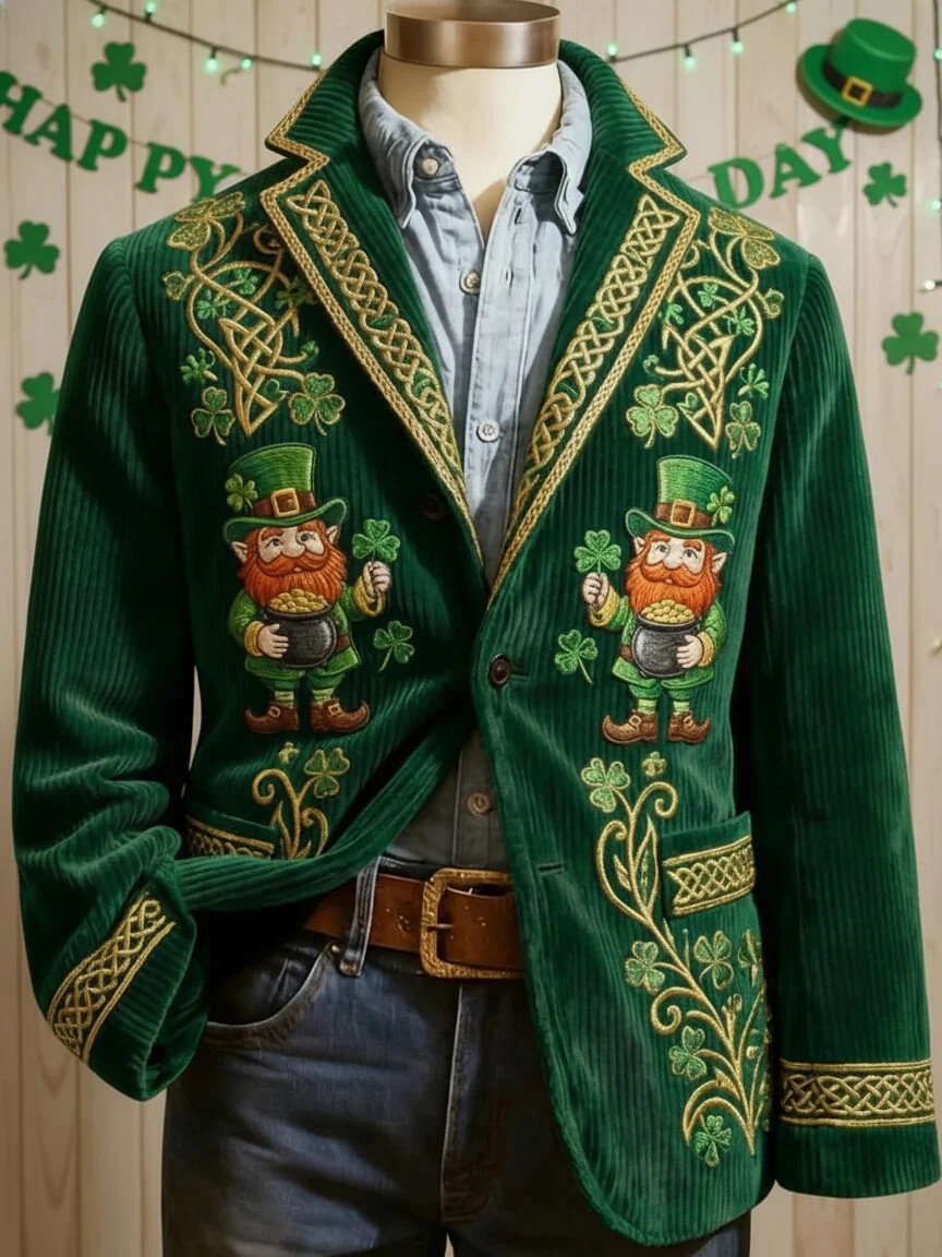 Men's St. Patrick's Day Print Casual Lapel Suit