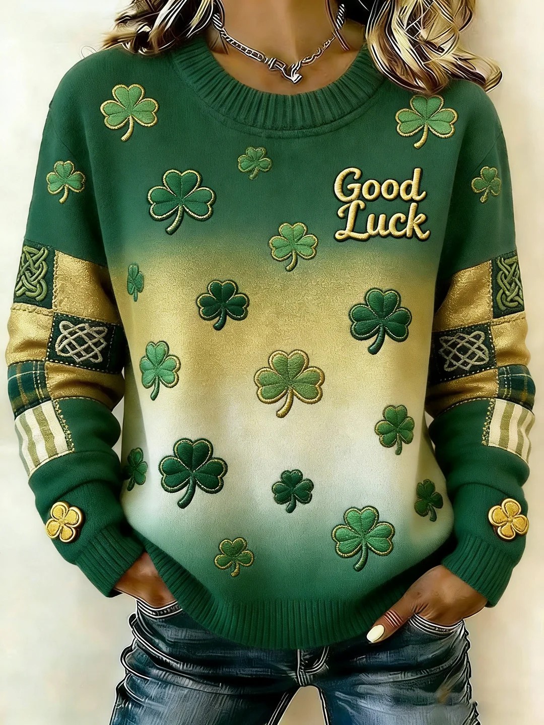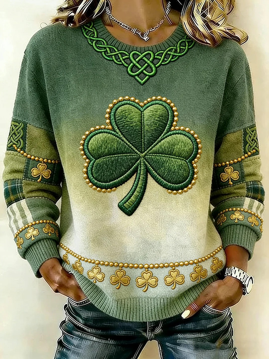 Women's St. Patrick's Day Shamrock Print Sweater
