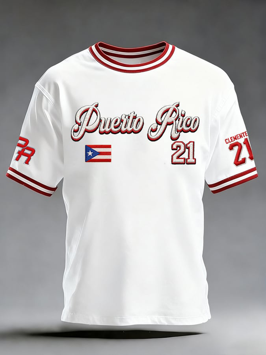 Men's Puerto Rico Baseball Print imitation cotton short-sleeved T-shirt
