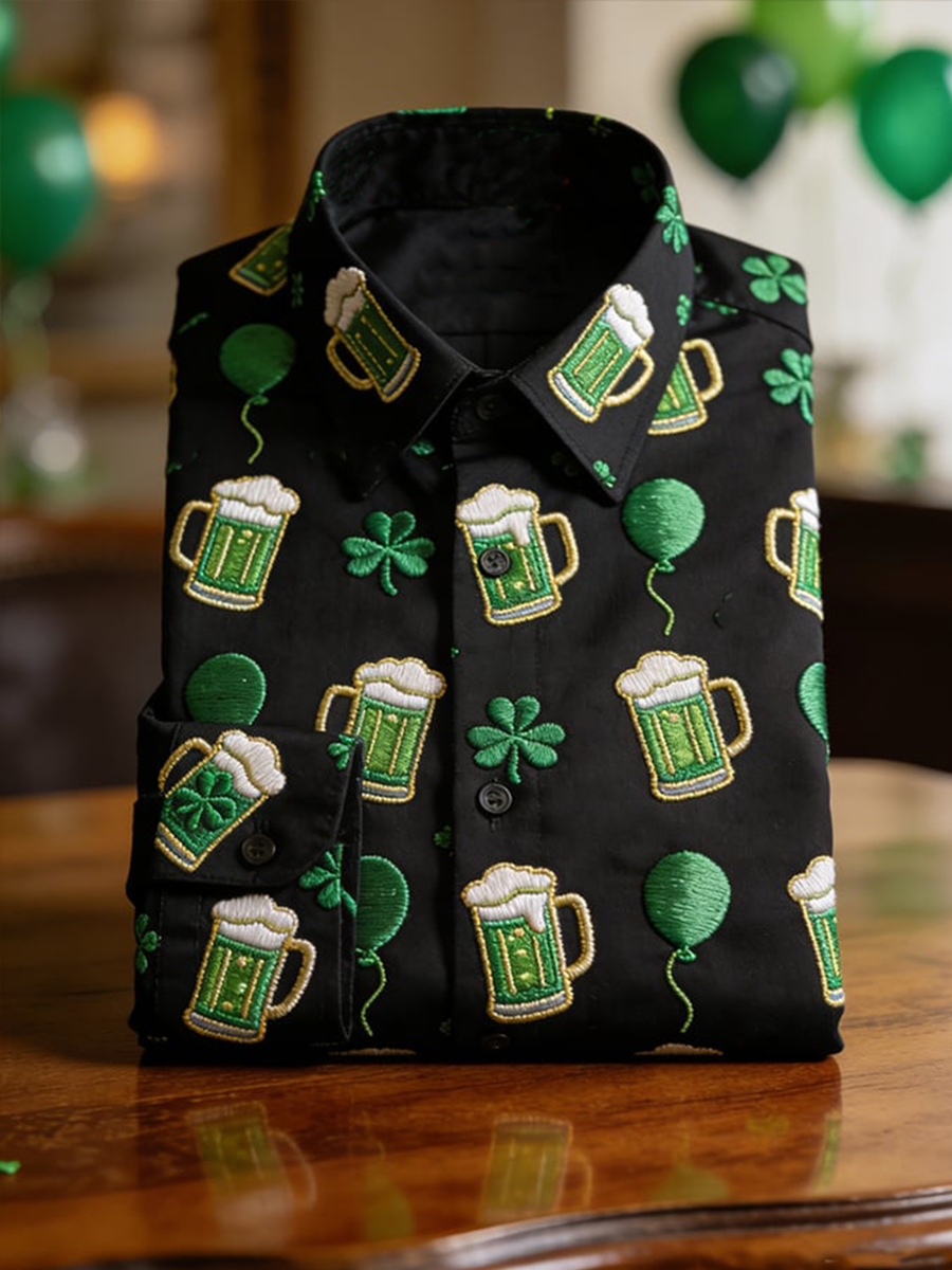 Men's St Patrick's Day Shamrocks Print Casual Long Sleeve Shirt