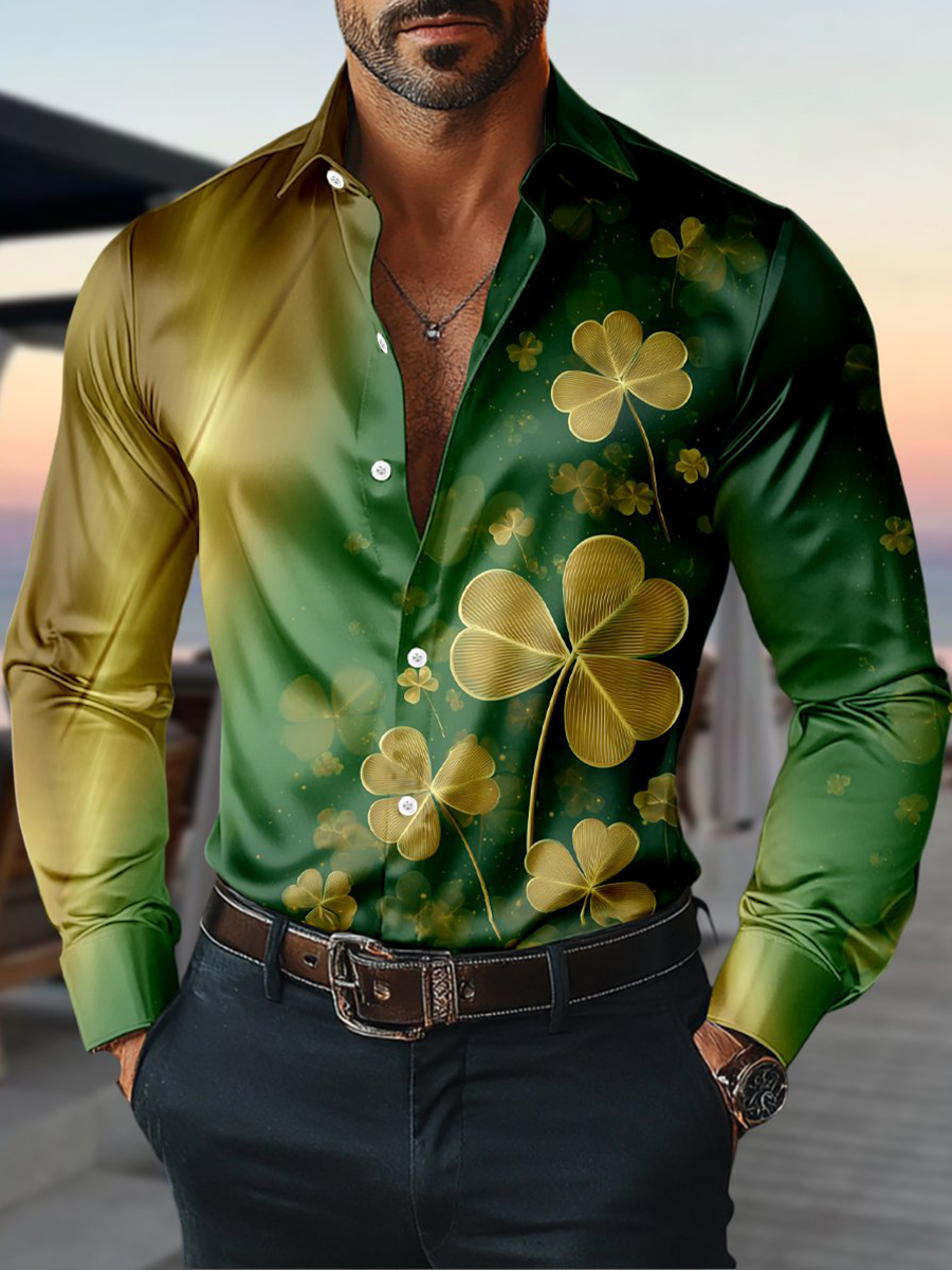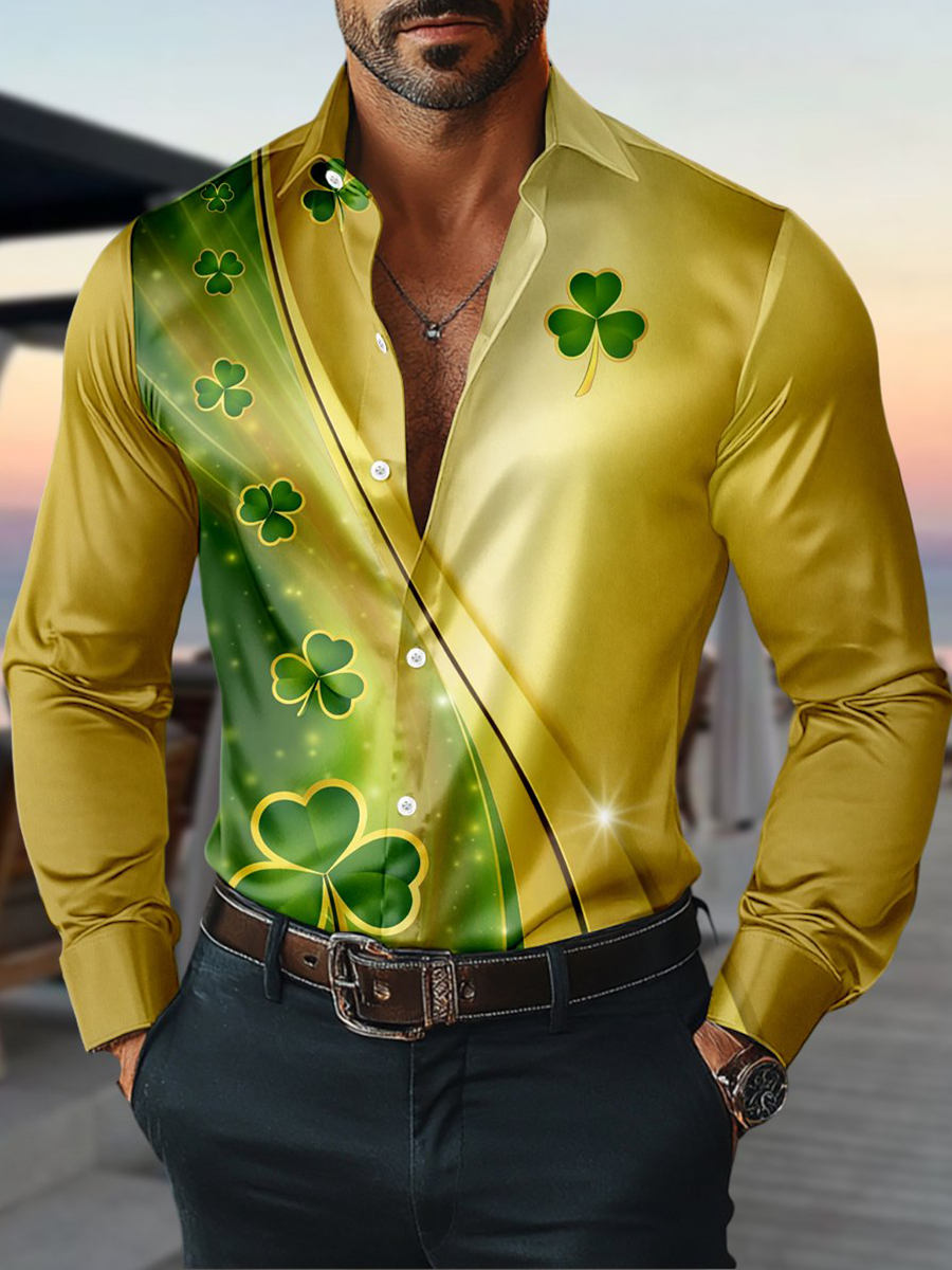 Men's St. Patrick's Day Shamrock Print Long-sleeve Shirt