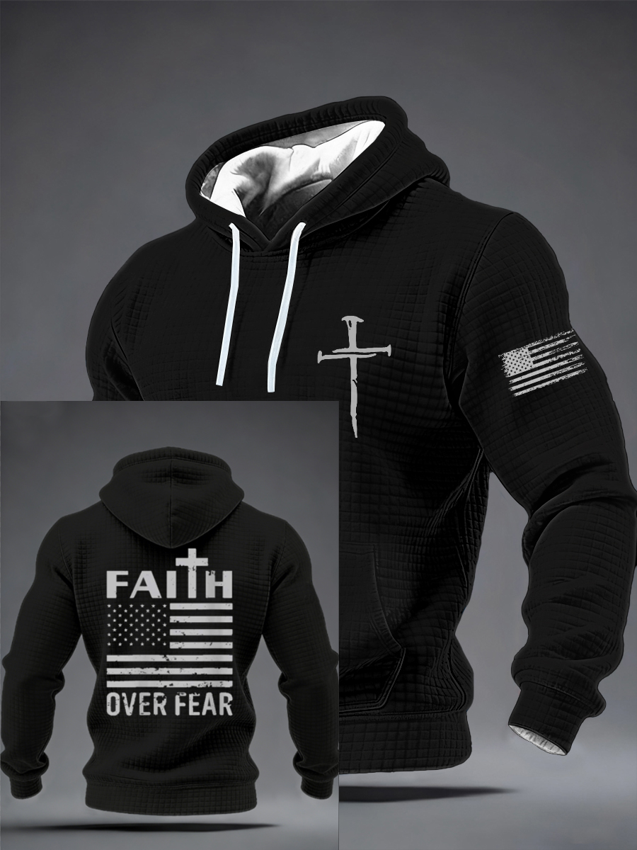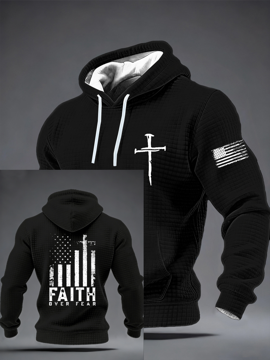 Men's Faith Over Fear Patriotic Christian USA Flag Lord Jesus Checkered Cotton Hoodie