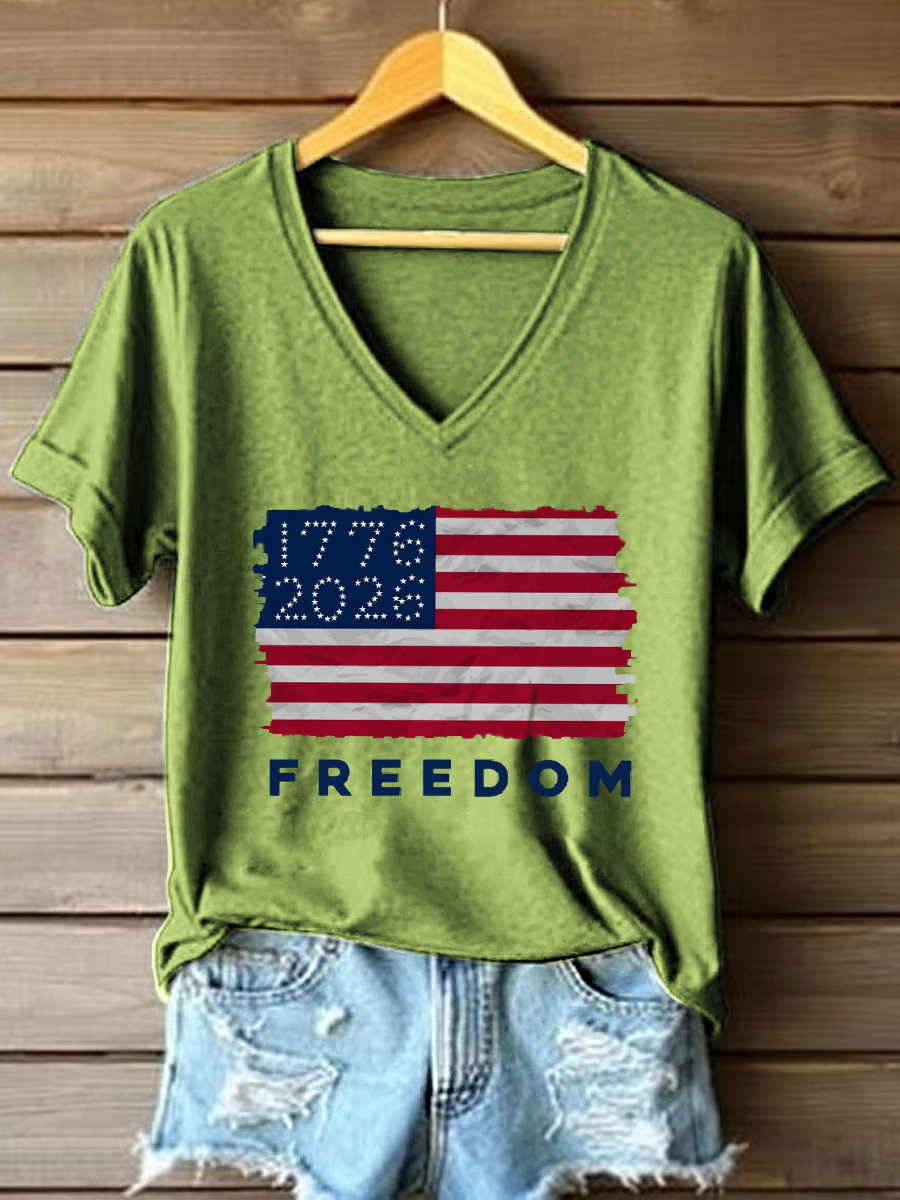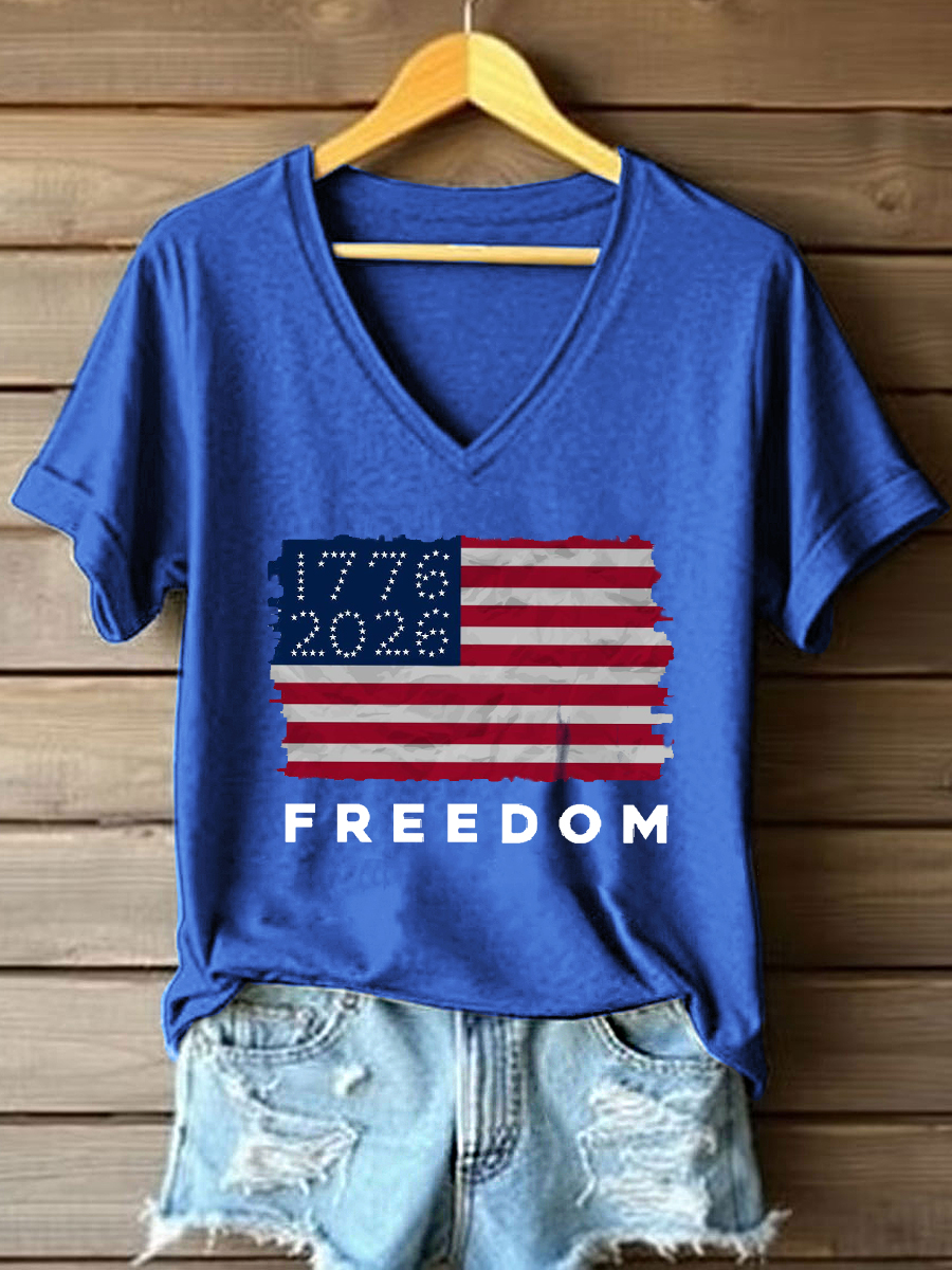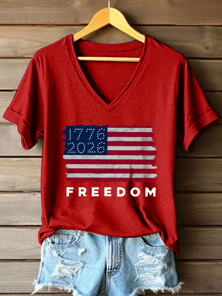Women's Independence Day Inspired Print V-Neck Top