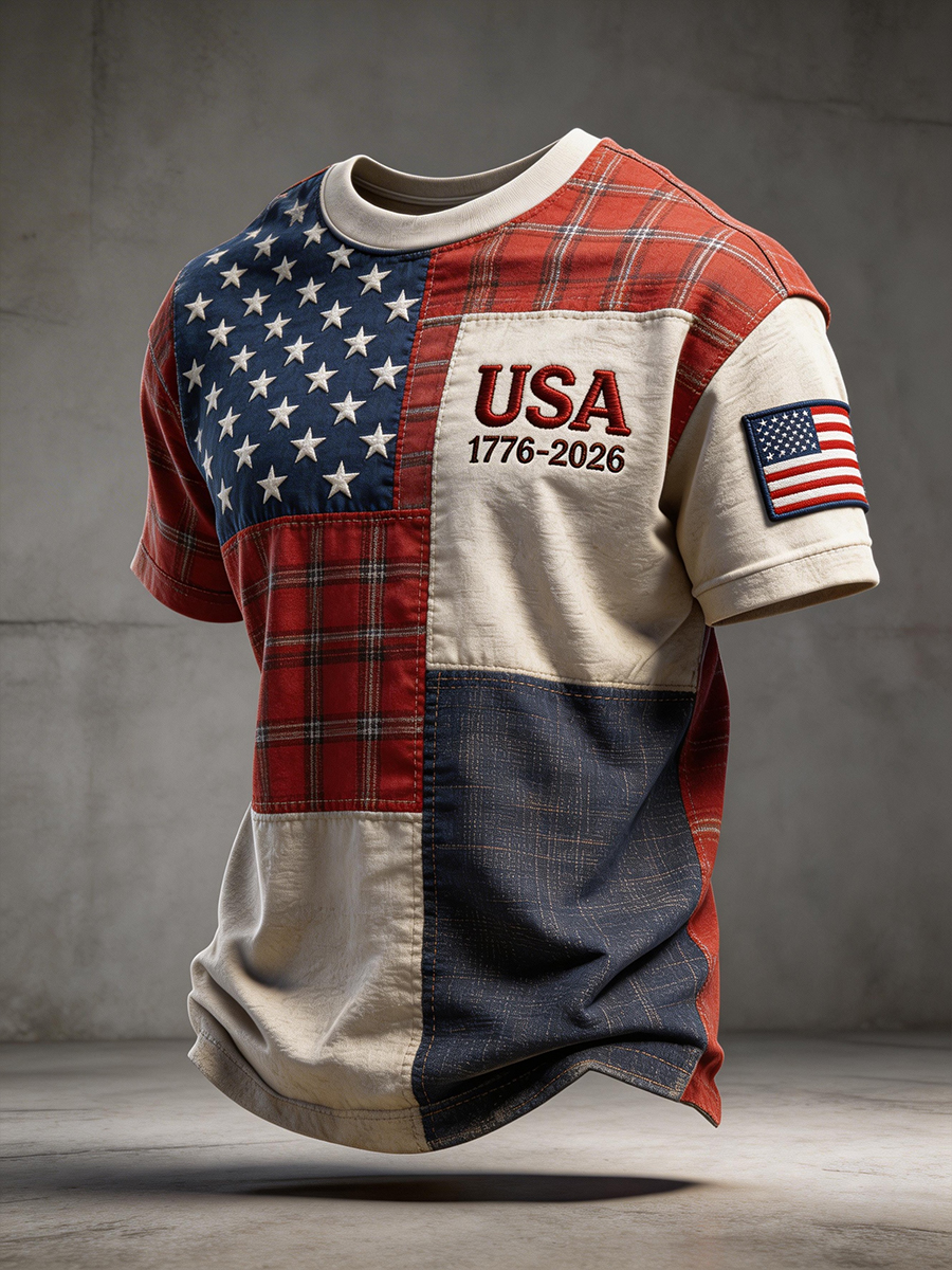 Men's USA 1776–2026 Patchwork Pattern T-Shirt