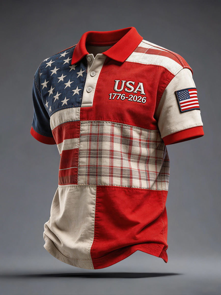 Men's USA 1776-2026 Embroidery Pattern Polo Shirt