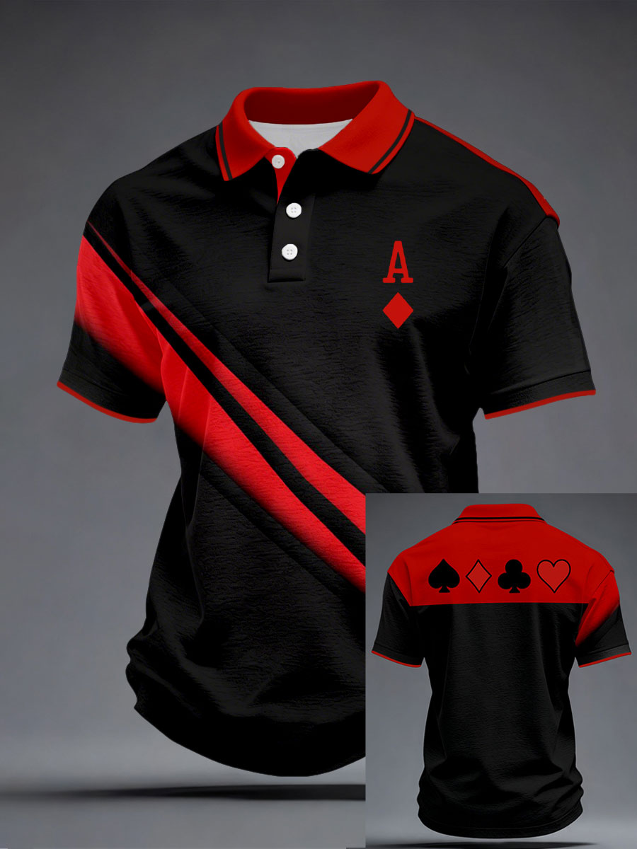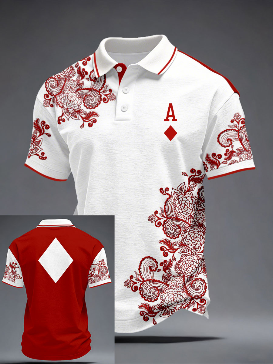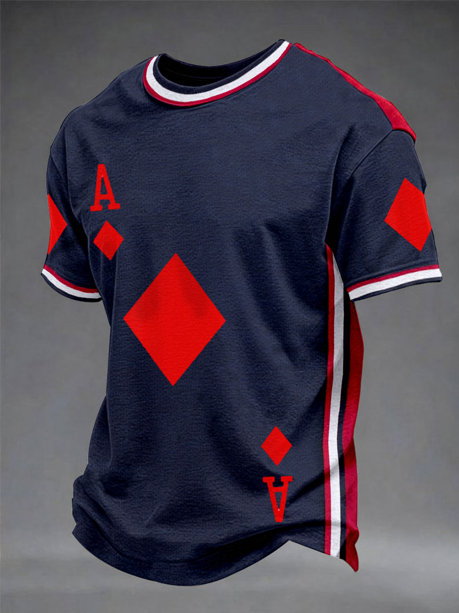 Men's Diamond A Playing Card Red Rose Tops