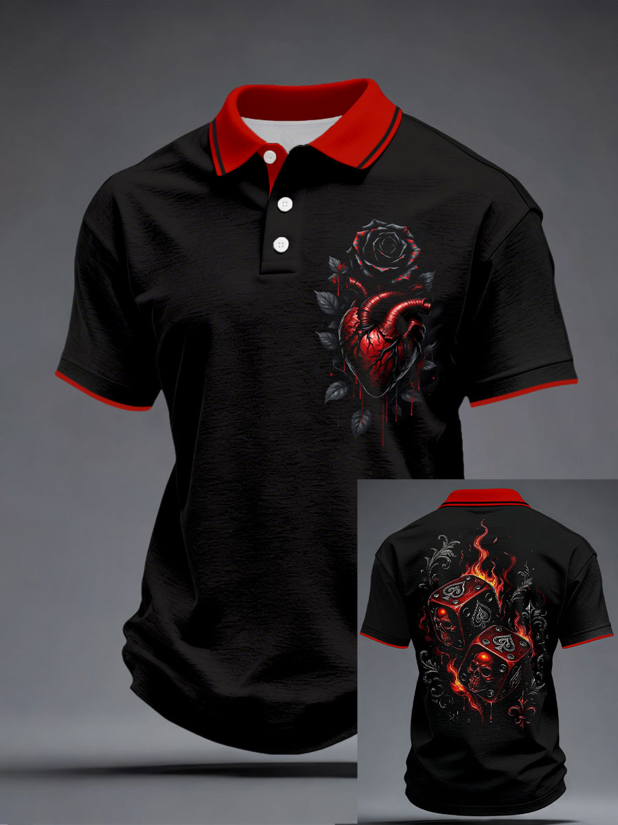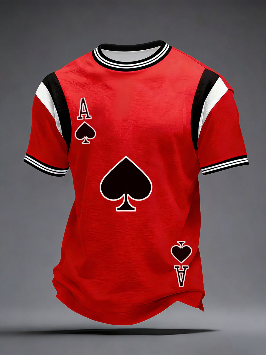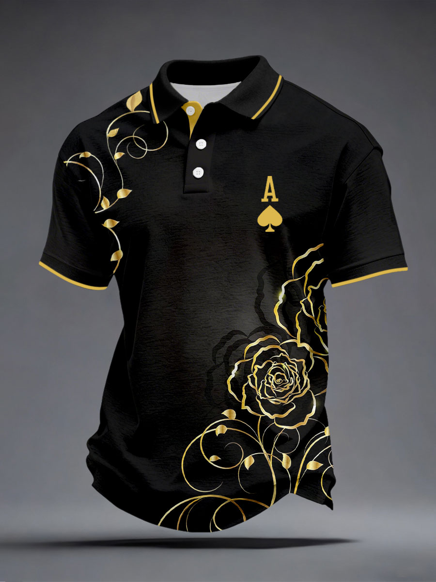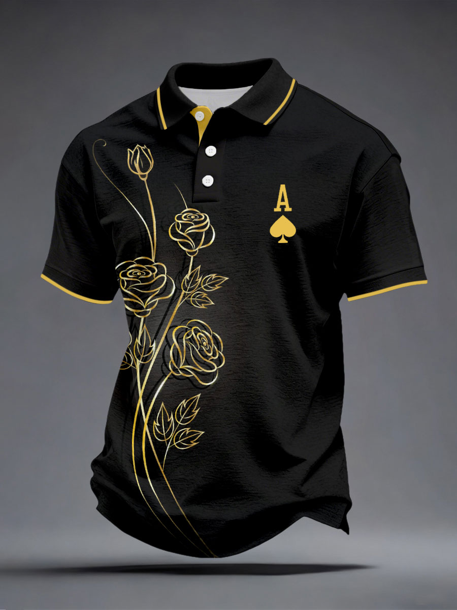 Men's Poker Spade A Rose Print Tops