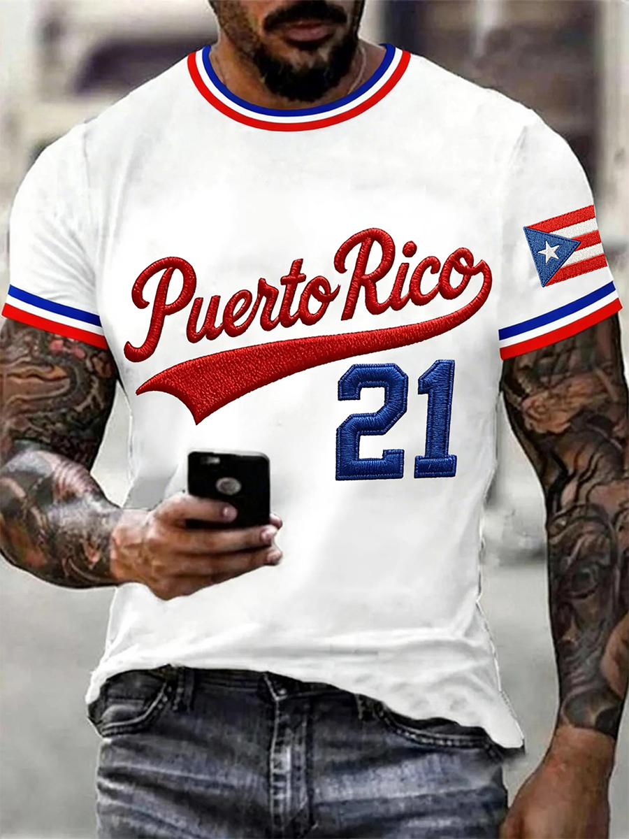 Men's Puerto Rico Baseball Print Casual Tee