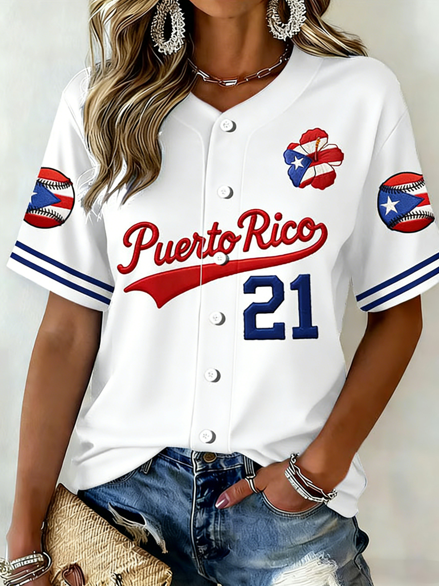 Women's Puerto Rico Baseball Print Casual Shirt