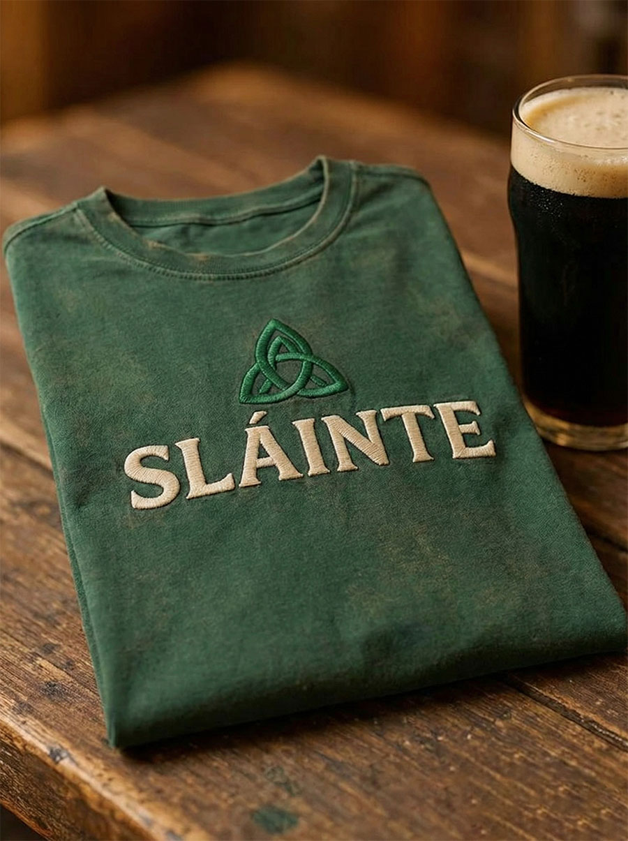 Men's Funny St. Patrick's Day Sláinte Shamrock Print Casual Long-Sleeve Top