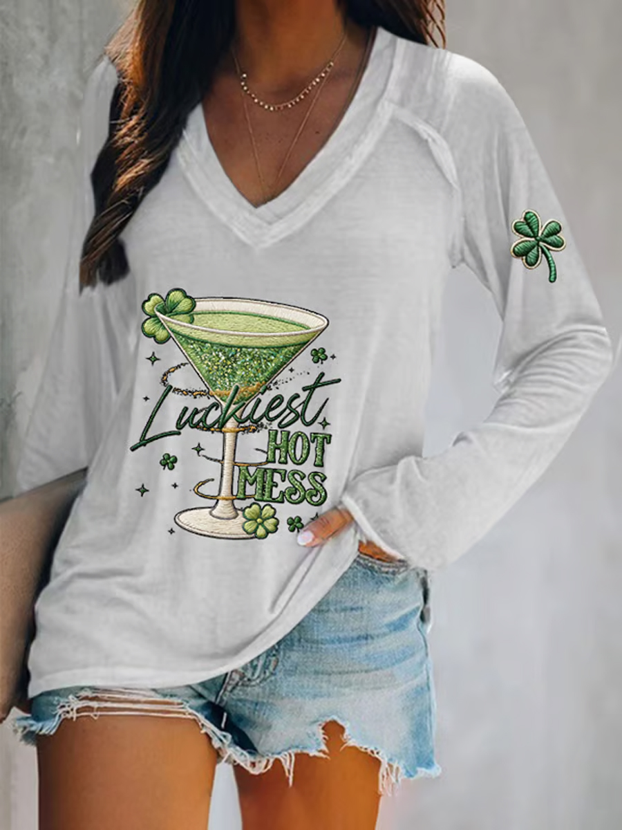 Women's St. Patrick's Day Print Casual V-Neck Top