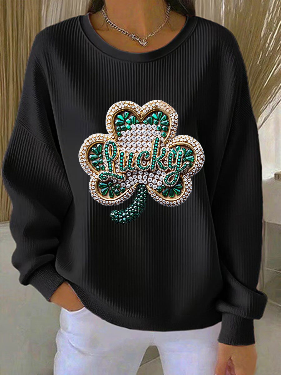 Women's St. Patrick's Day Print Waffle Sweatshirt