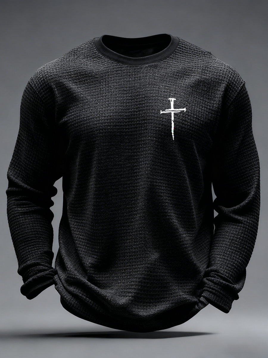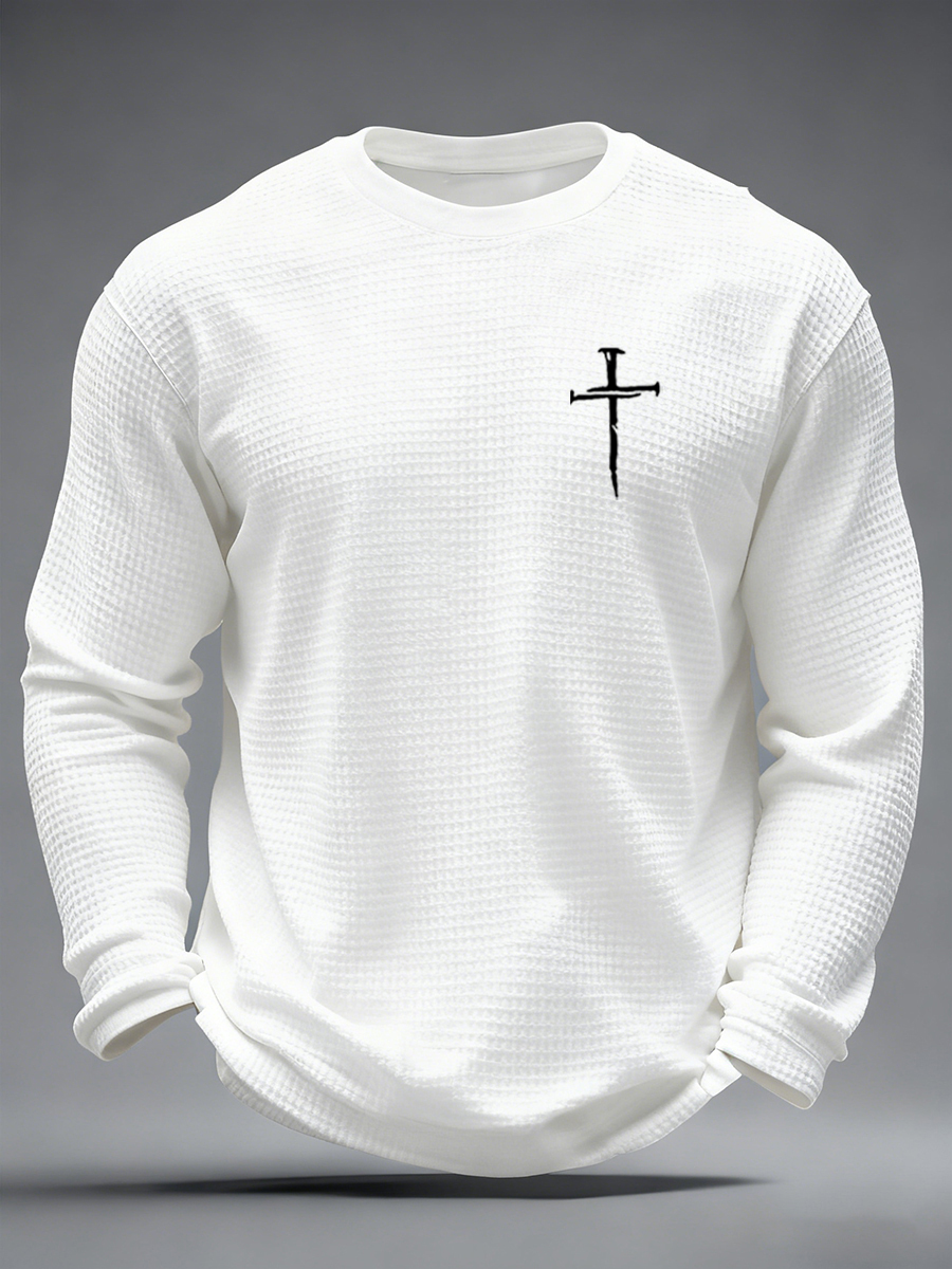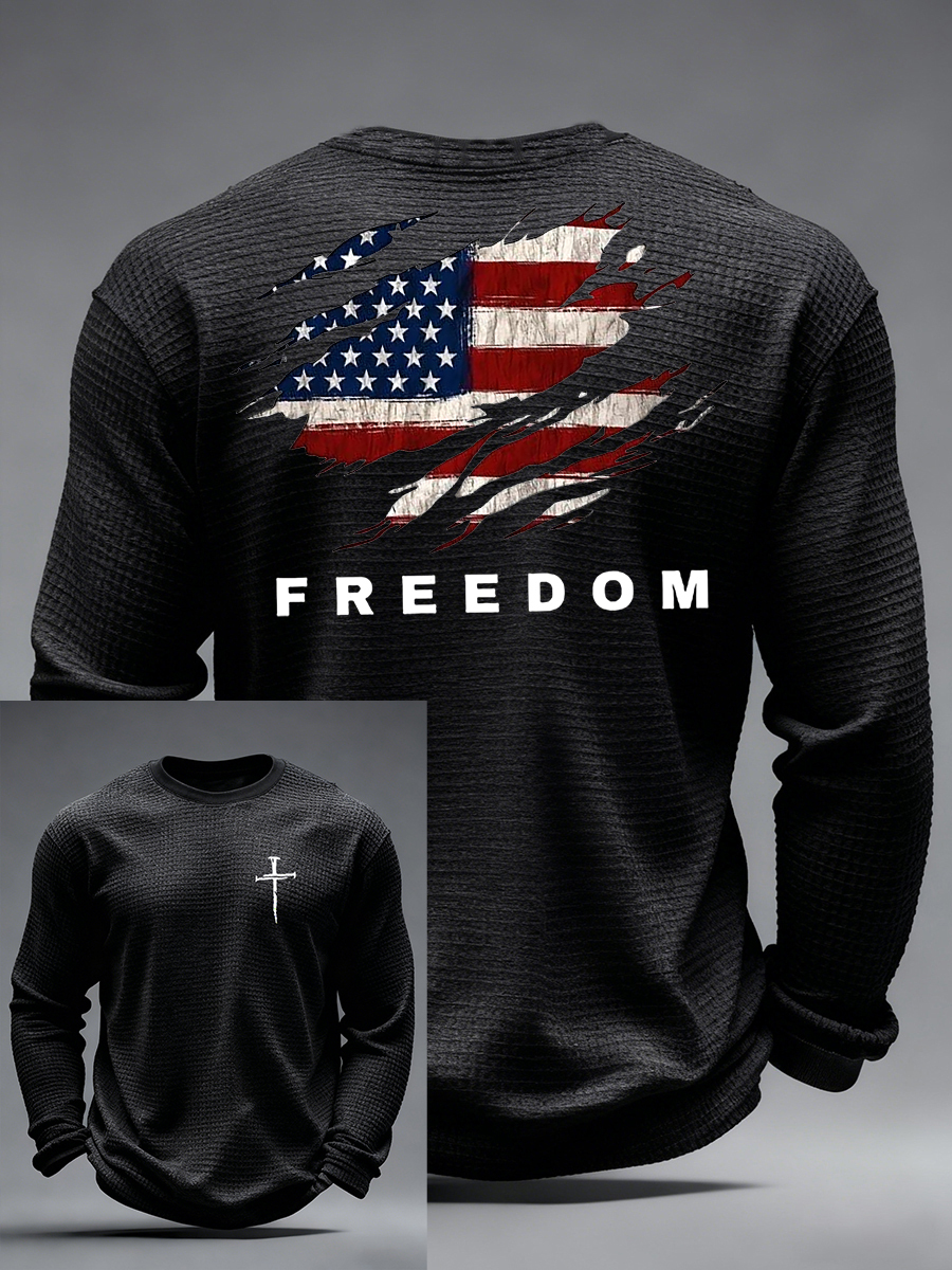Men's Christian Freedom Cross Flag Waffle Long Sleeve T-Shirt