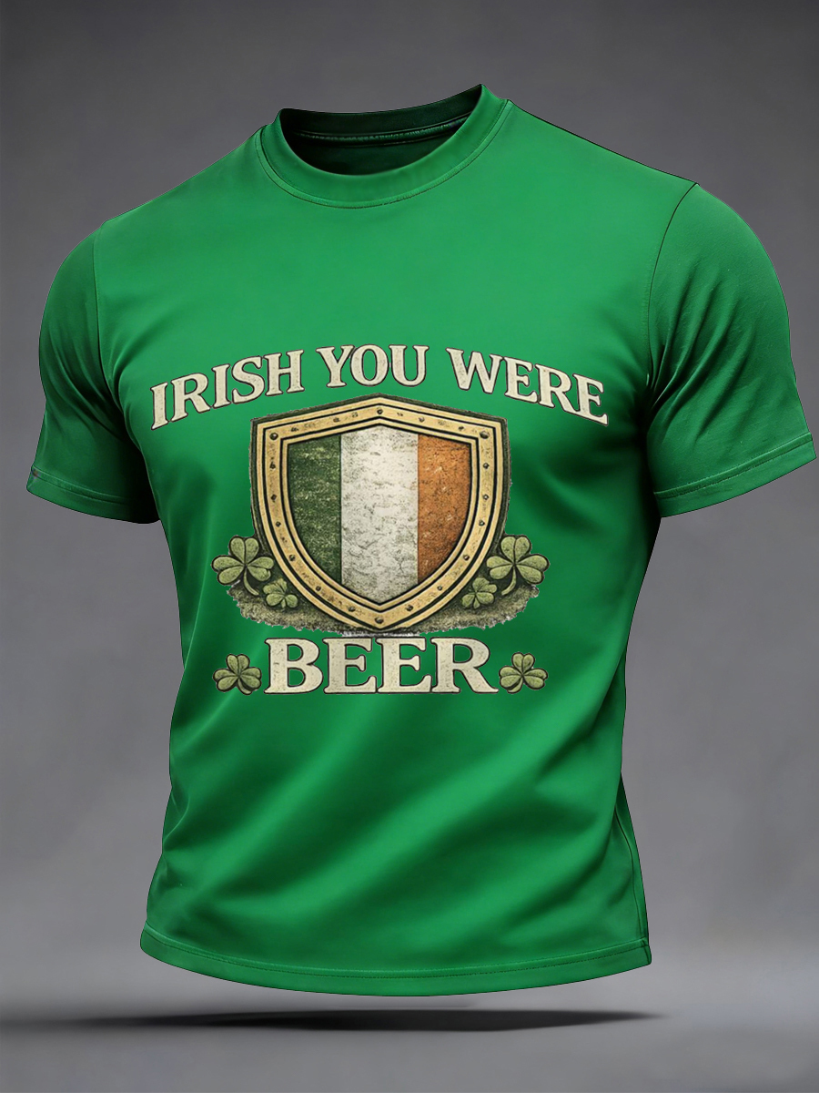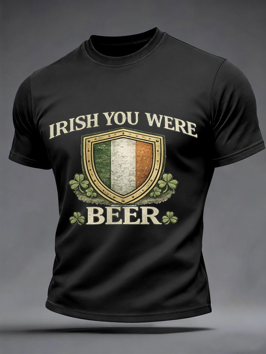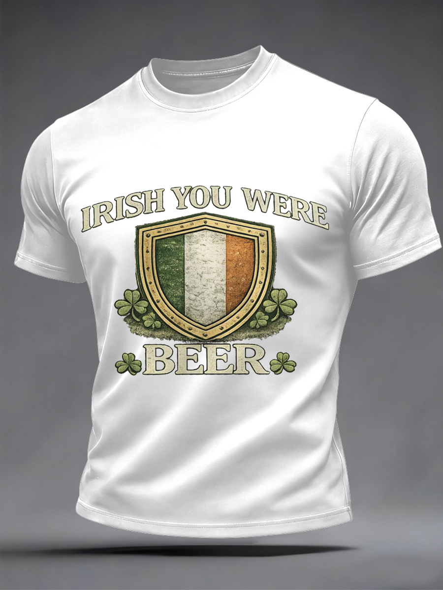 Men's Funny St. Patrick's Day Irish You Were Beer Print Casual Tee