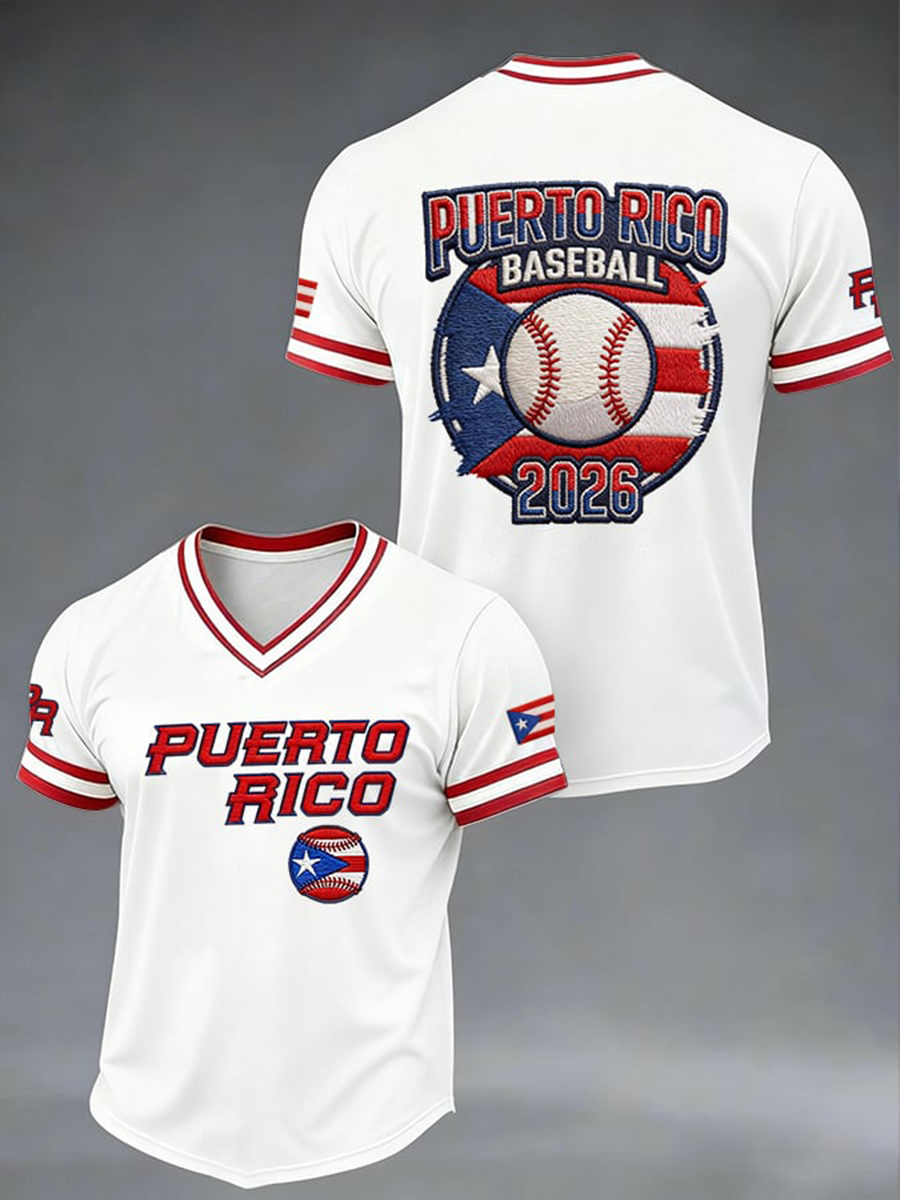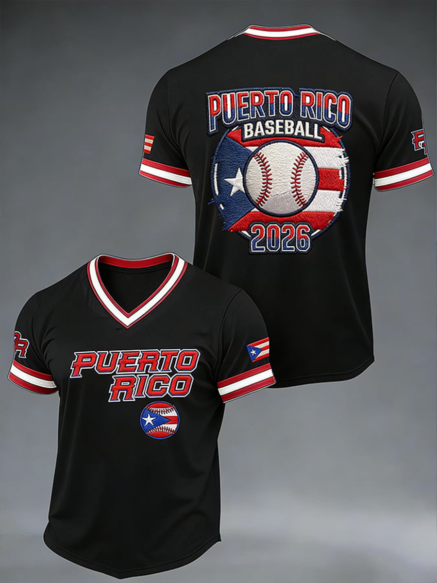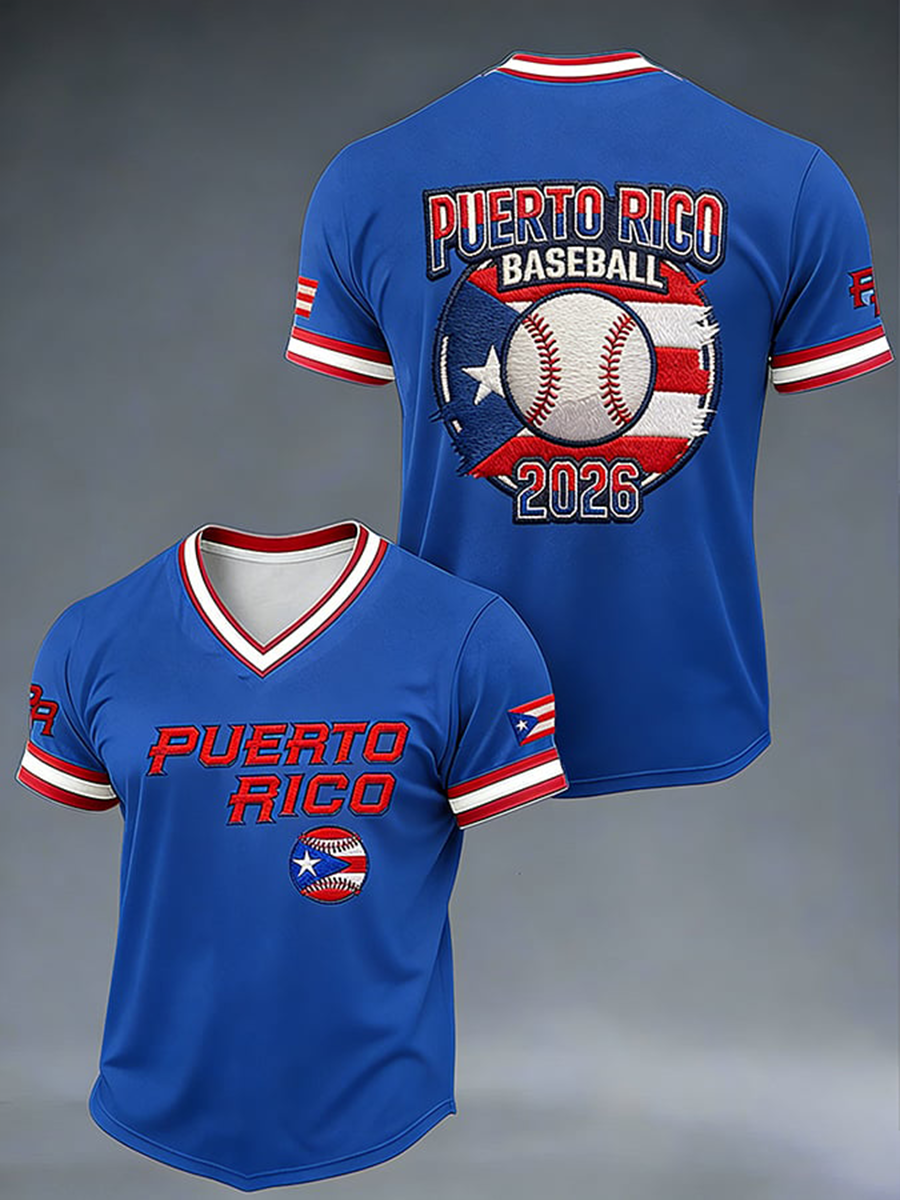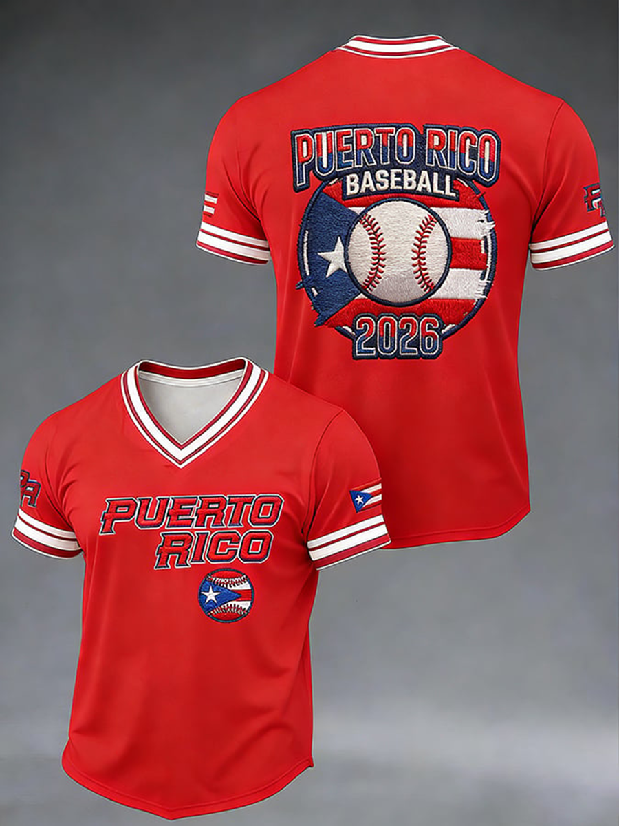 Men's Puerto Rico Baseball V-neck T-shirt