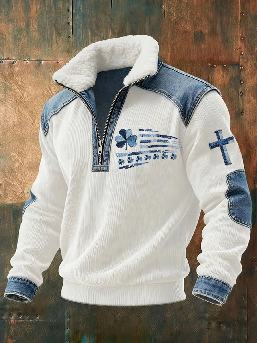 Men's St. Patrick's Day Cross Plush Stand Collar Shirt