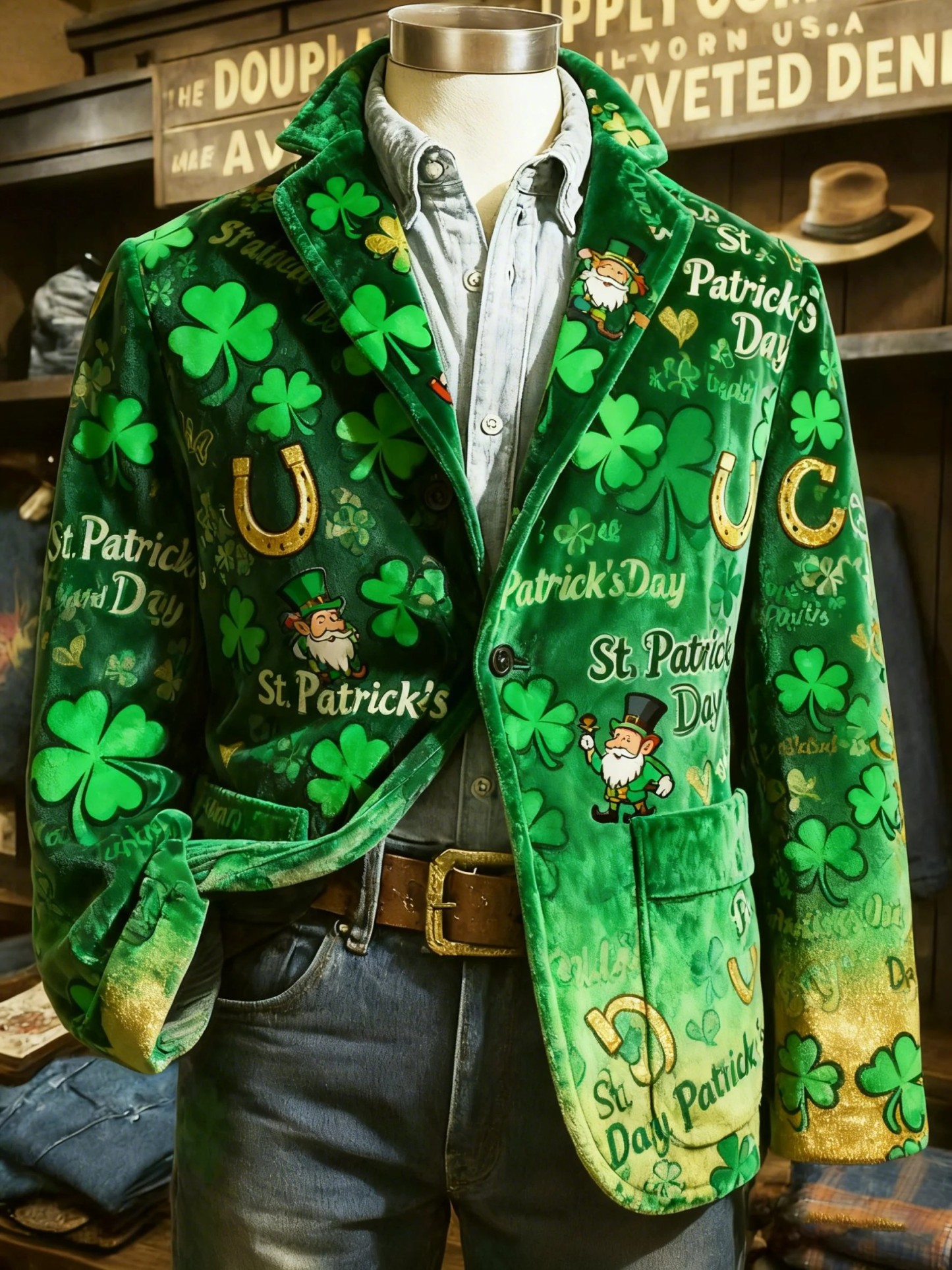Men's St. Patrick's Day Print Casual Lapel Suit