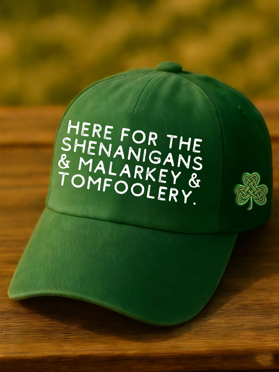 Unisex Funny St. Patrick's Day Here For The Shenanigans Malarkey Tomfoolery Shamrock Print Hat