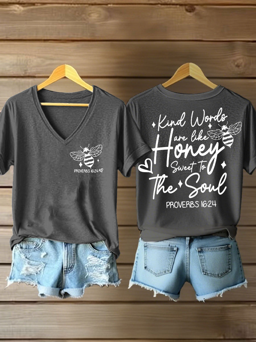 Women's 'Kind Words Are Like Honey' Printed Casual T-Shirt