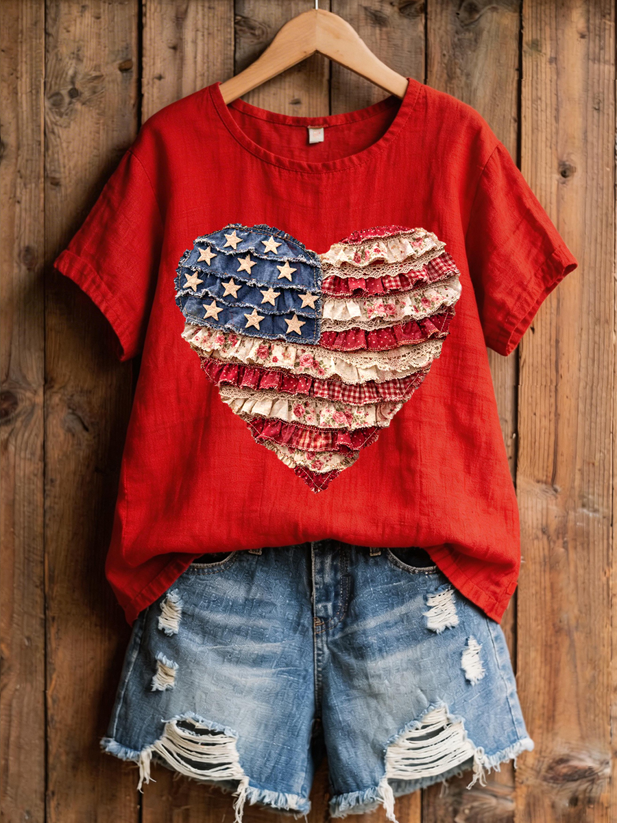 Women's American Flag Patchwork Pattern Linen Blend Shirt