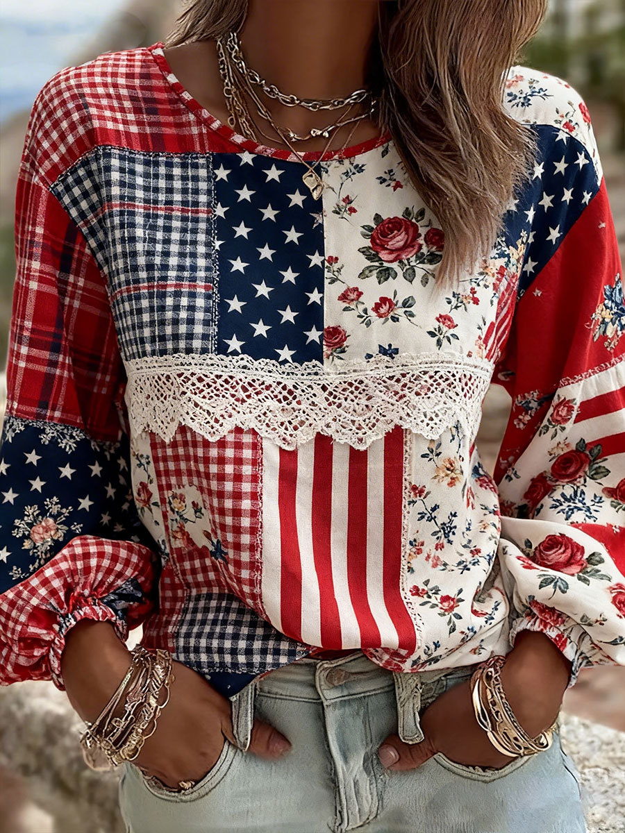Women's Patchwork Floral Print Casual Top