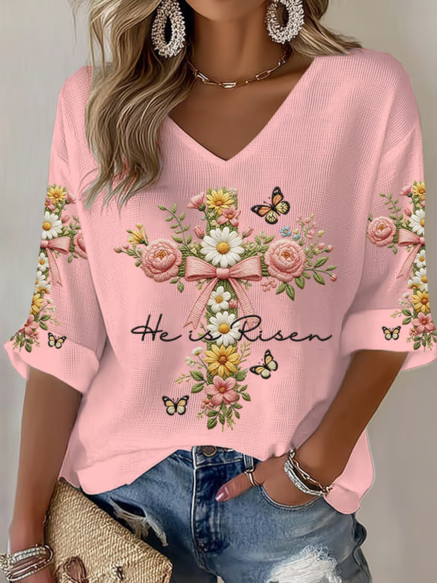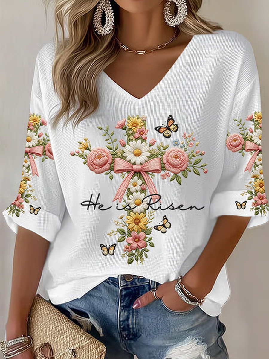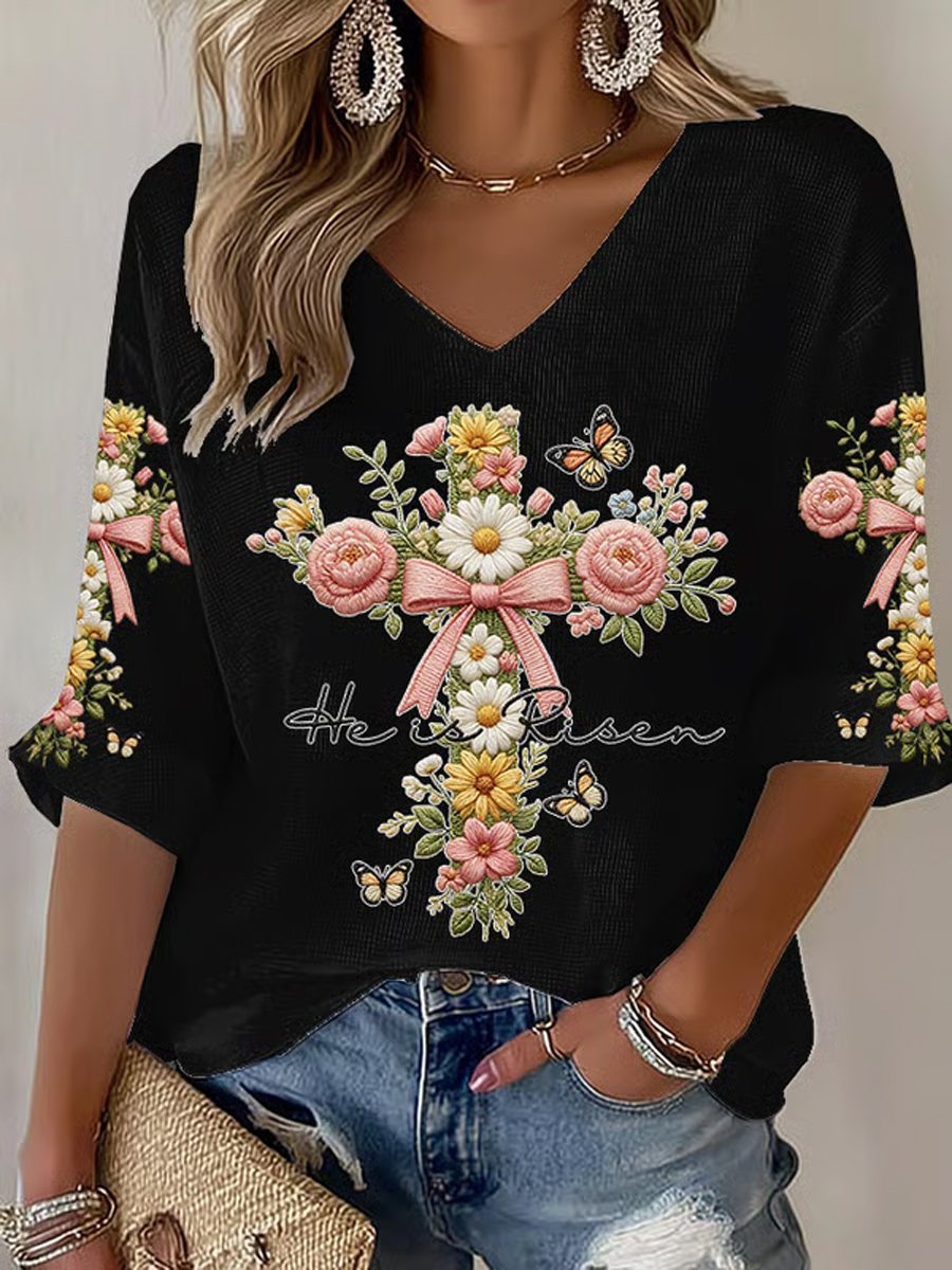 Women's Plants Flowers Faith Print Casual T-shirt