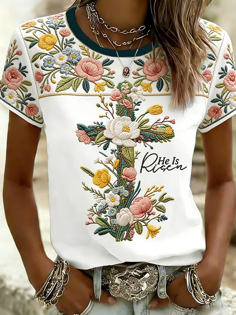 Women's Plants Flowers Faith Printed T-shirt