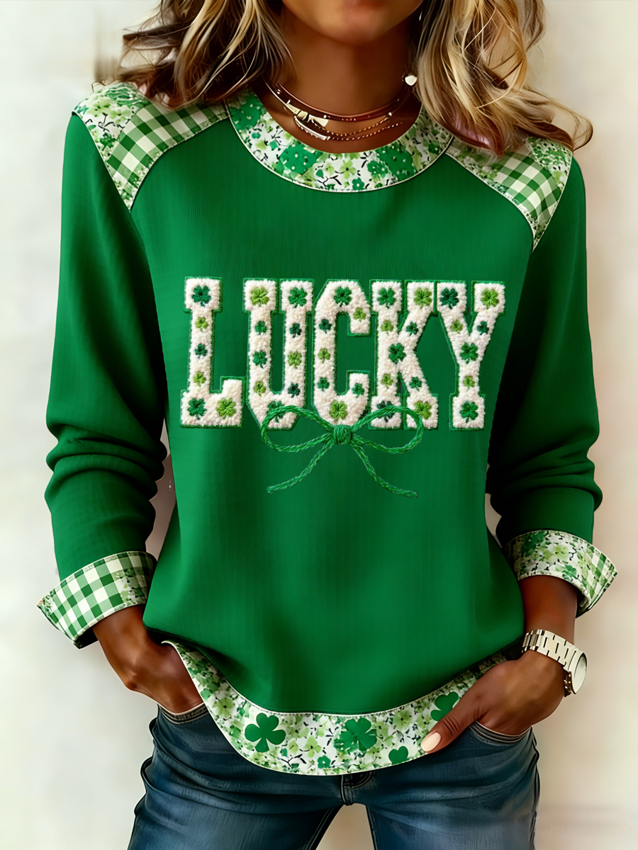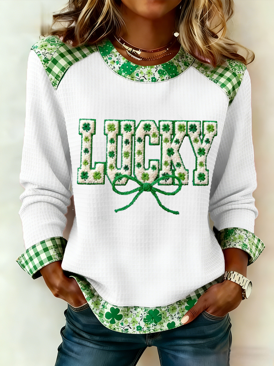Women's St. Patrick's Day Lucky Shamrocks Print Casual Waffle Sweatshirt