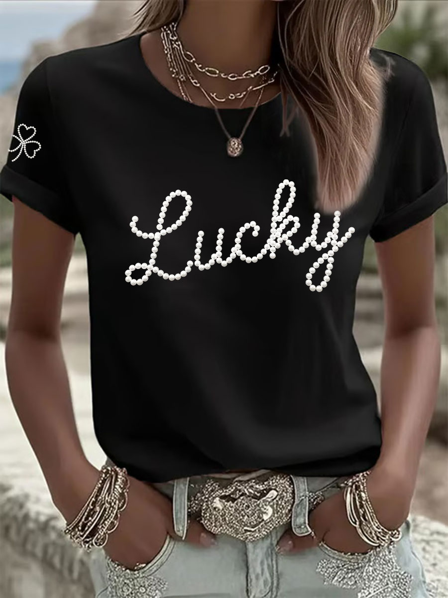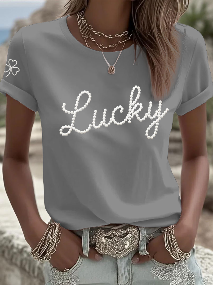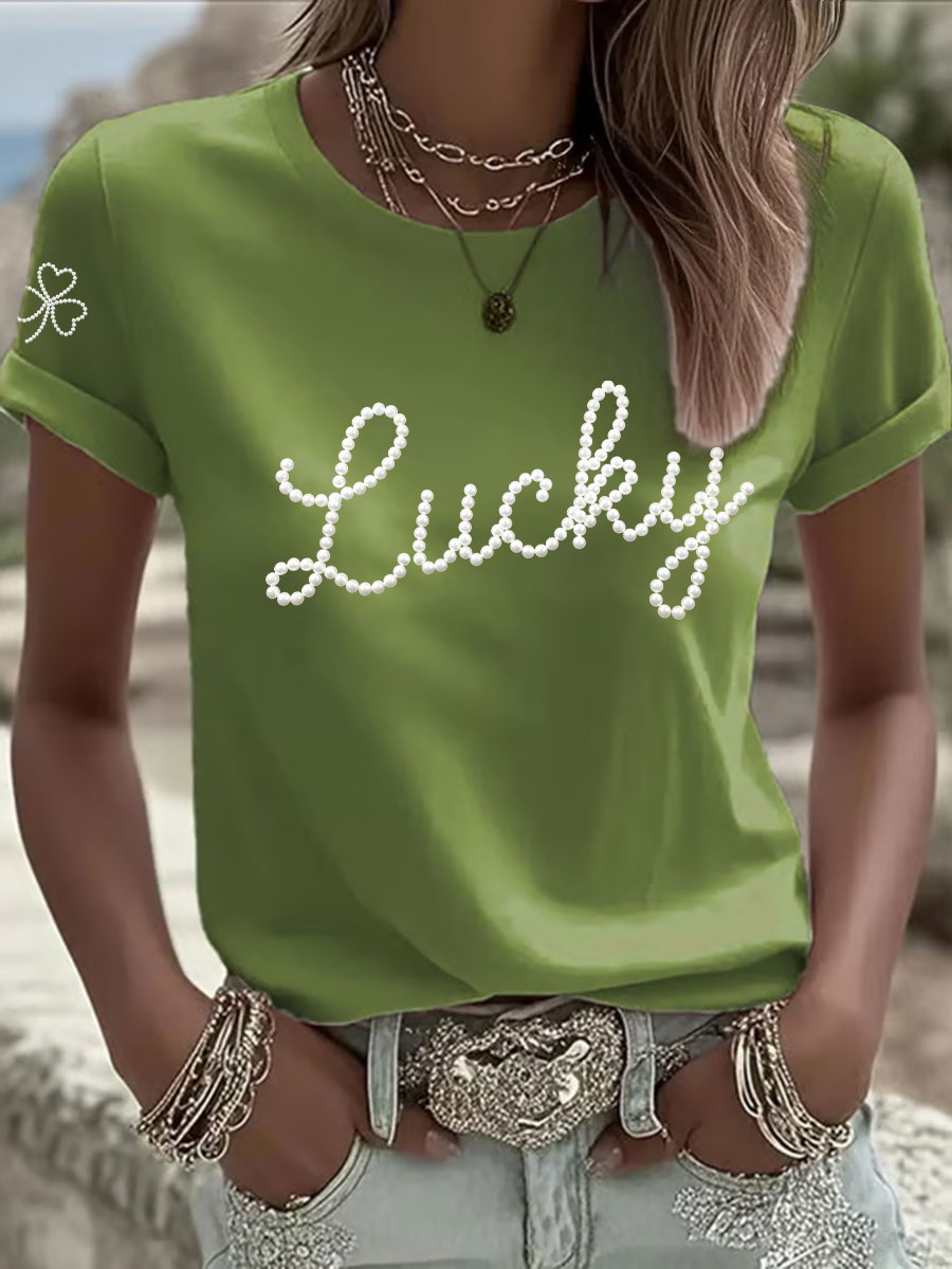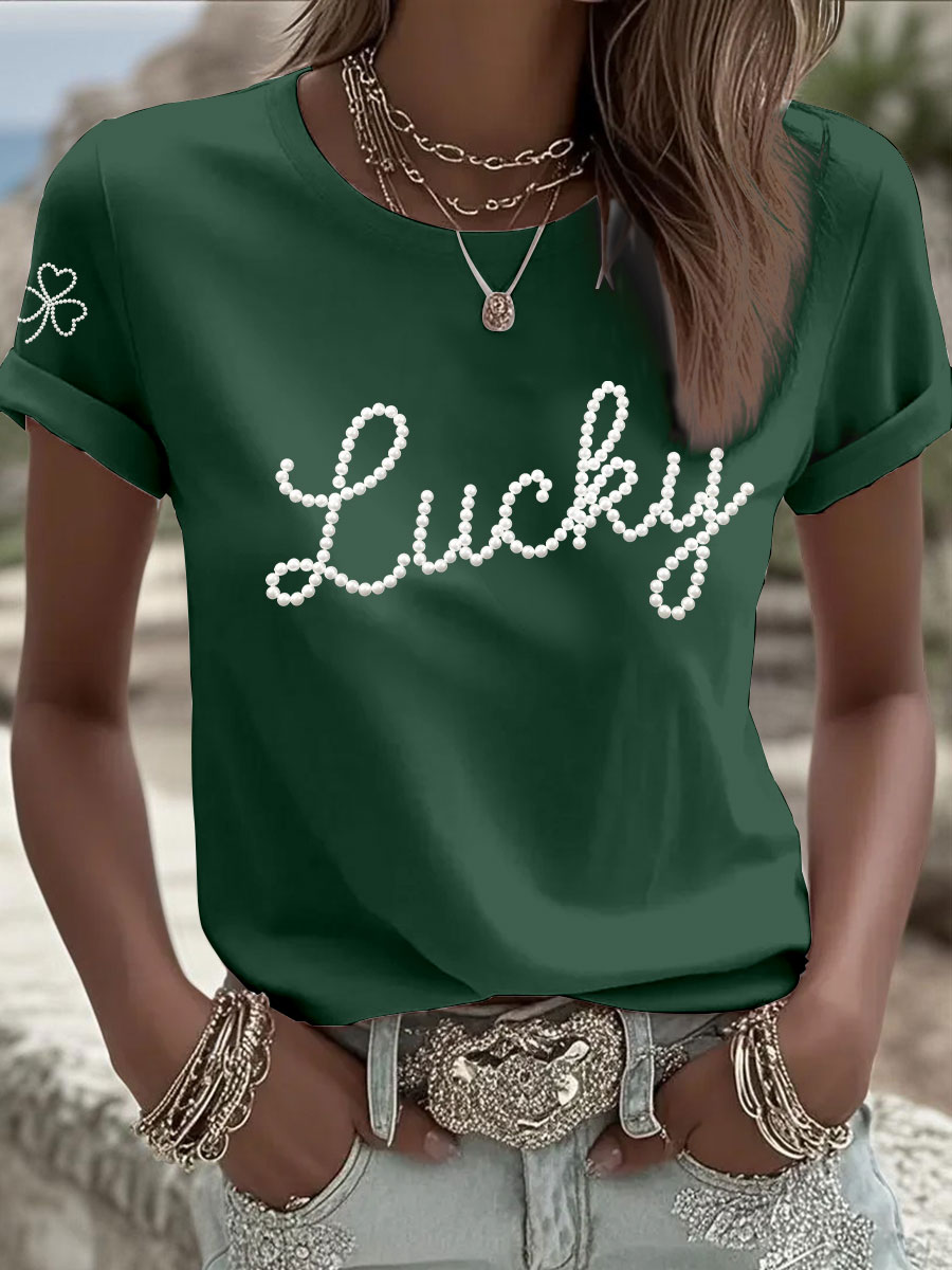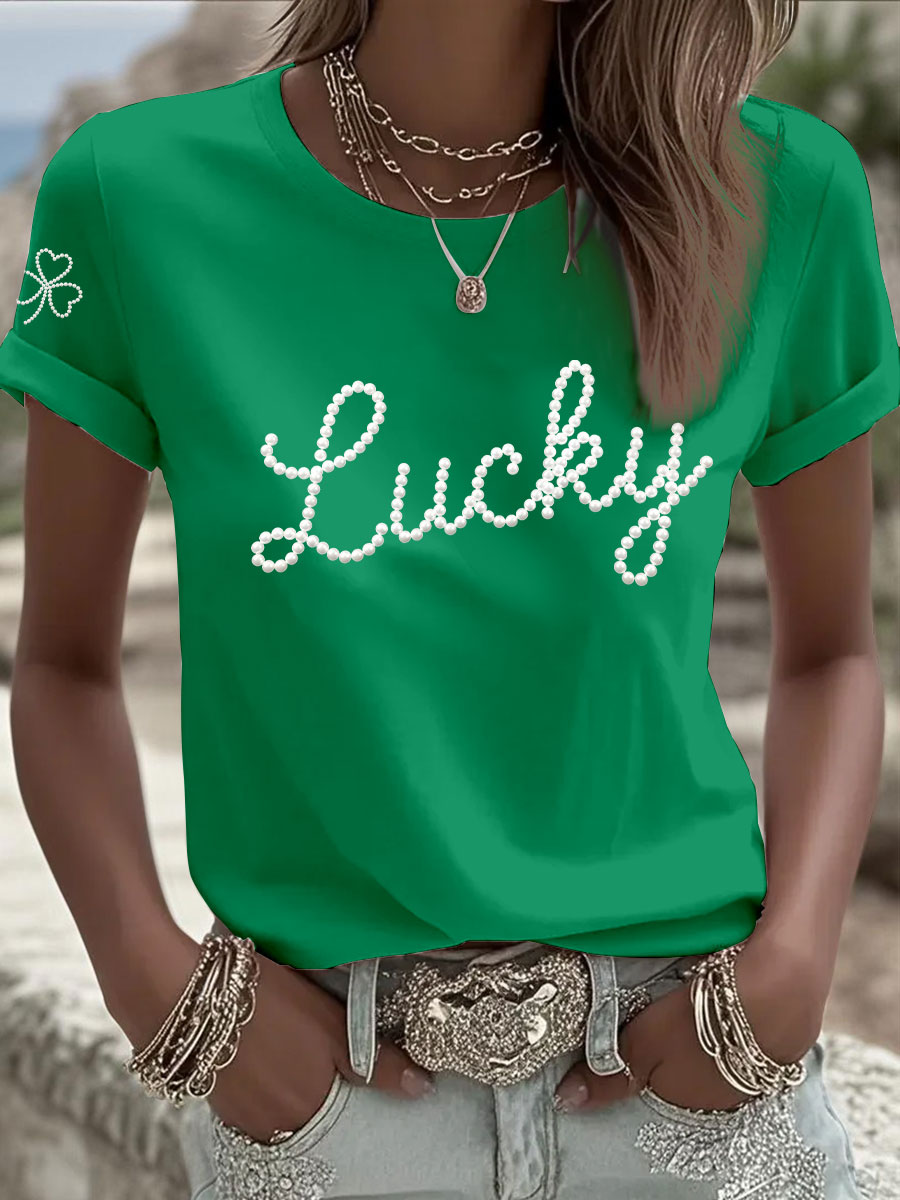 Women's St. Patrick's Day Pearl Shamrock Print Casual T-Shirt