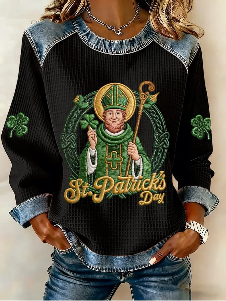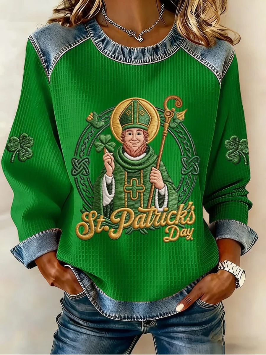 Women's St. Patrick's Day Print Waffle Sweatshirt