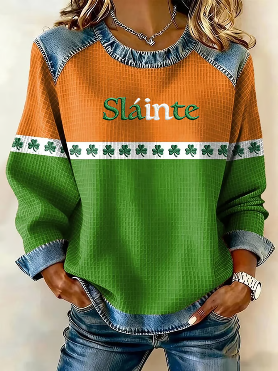 Women's St. Patrick's Day Printed Denim Patchwork Top